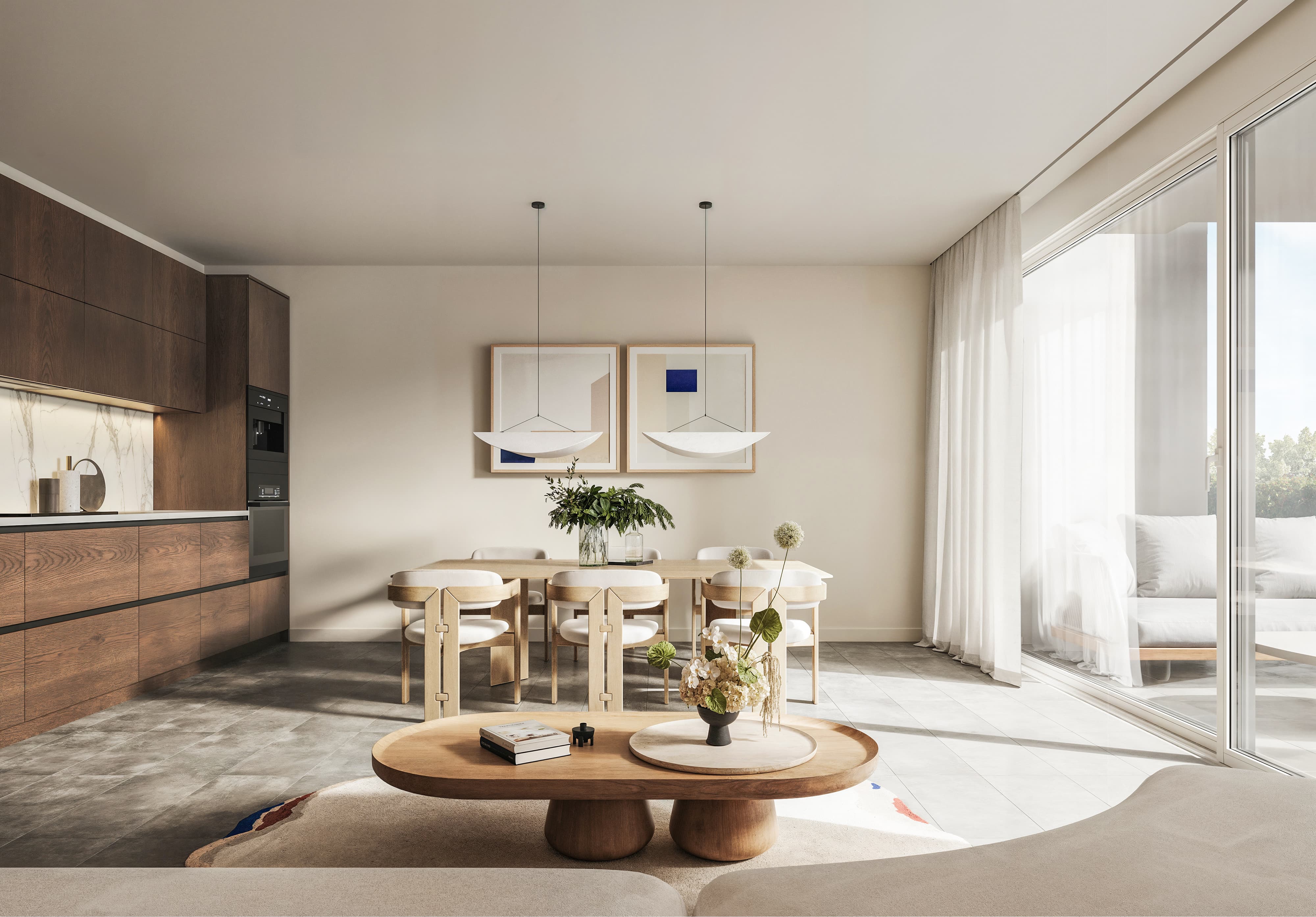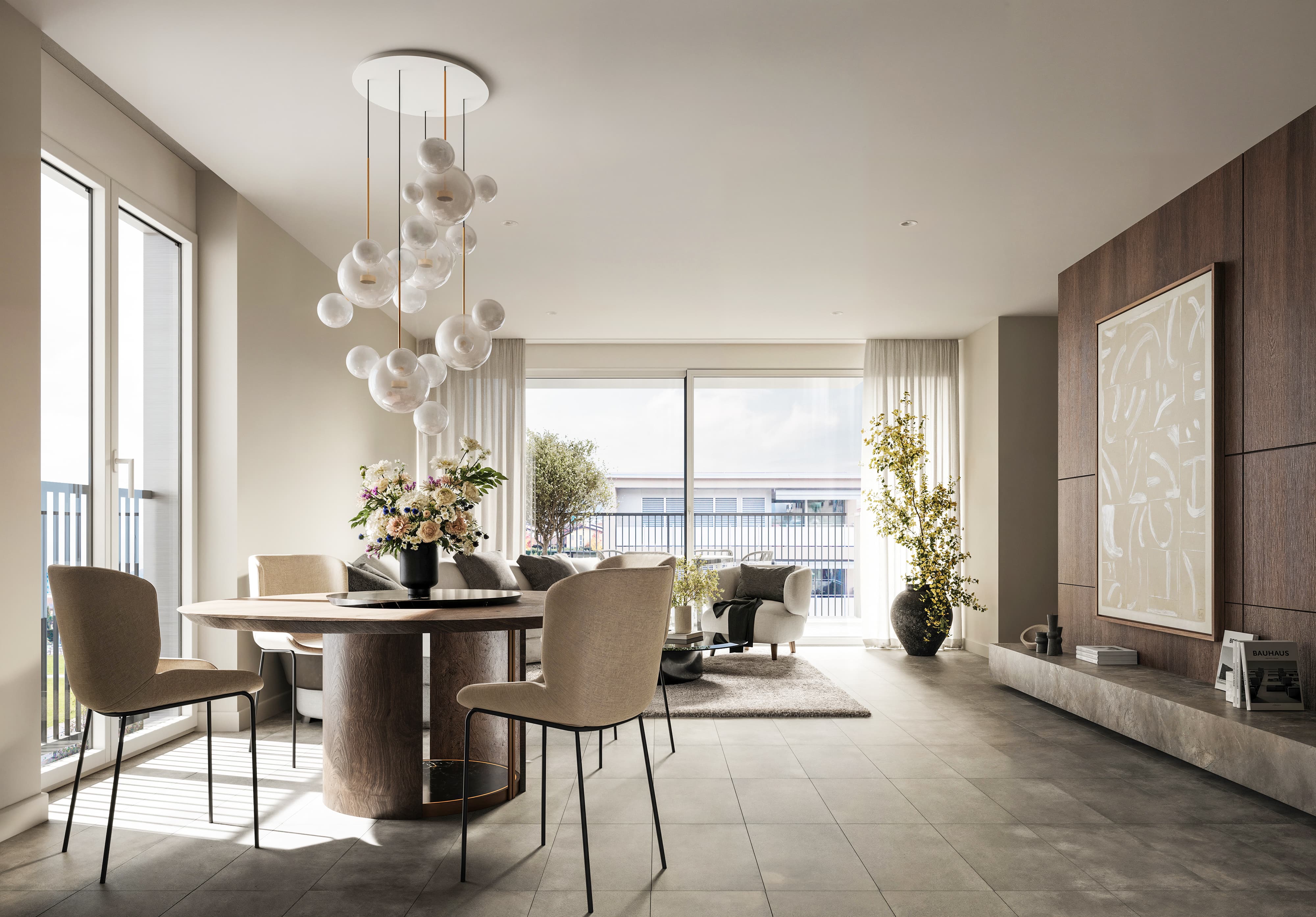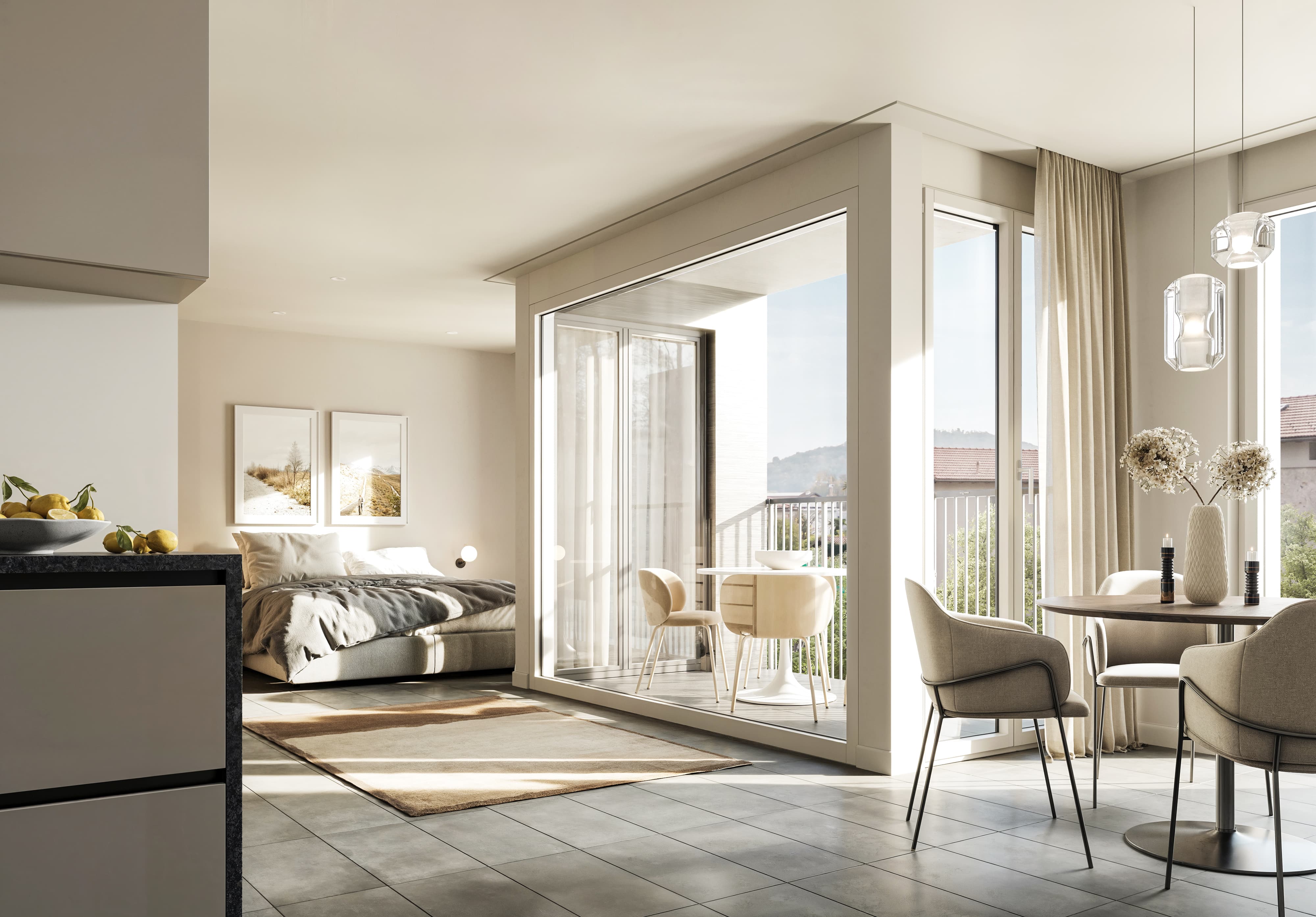 Die Innenräume der RESIDENZA BARICO strahlen eine moderne Eleganz aus. Feinsteinzeugplatten spiegeln eine klare und zugleich warme Atmosphäre wider, während glatte Gipswände einen anspruchsvollen Hintergrund schaffen. Küchen mit stilvollen Schränken vervollständigen das zeitlose Design. Die grossen Fenster mit Aluminiumrahmen laden das natürliche Licht ein und verstärken das Gefühl von Raum und Offenheit.